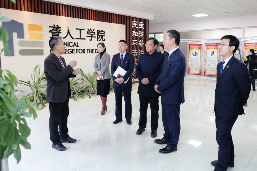 公司党总支书记刘迎、经理王春东对各位领导的到来表示热烈欢迎,并向来宾详细介绍了学院的发展历程、办学指导思想、办学规模、专业设置、校企协同育人及近年来取得的教学成果。重点介绍了在人工智能技术领域工信部立项的《复杂场景下中国手语实时翻译系统》、全国优秀员工创业创新项目《柒屿手工坊》。中国农业银行天津市分行党委负责人徐雅林对学院的办学条件、人才培养、老员工创新创业、解决毕业生就业等方面做出的成绩表示赞赏。在参观期间,来访的嘉宾参观了学院实验室,同学院专业教师进行了深入交流。